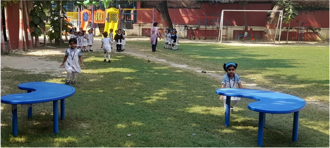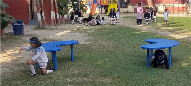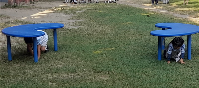 The little ones of Class Pre-Nursery participated enthusiastically in the “Cross the Tunnel Race” held on 7th November. The race was designed to promote gross motor skills, coordination, and confidence among the children. With bright smiles and excitement in their eyes, the tiny tots eagerly waited for their turn. As the whistle blew, each child crawled through the colorful tunnel with great enthusiasm, cheered on by their teachers and friends. The joy on their faces as they reached the finish line was truly heartwarming.