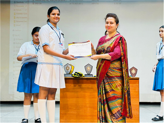 Our school was adjudged the 1st Runners-up Team in the Preliminary Round, a testament to the team’s strong arguments, clarity of thought, and confident presentation. Japneet Kaur brought further distinction to the school by earning the award for being the 2nd Best Speaker in both the Preliminary and Turncoat Rounds of the debate.