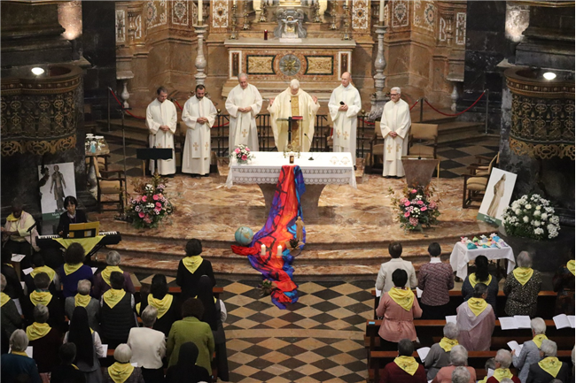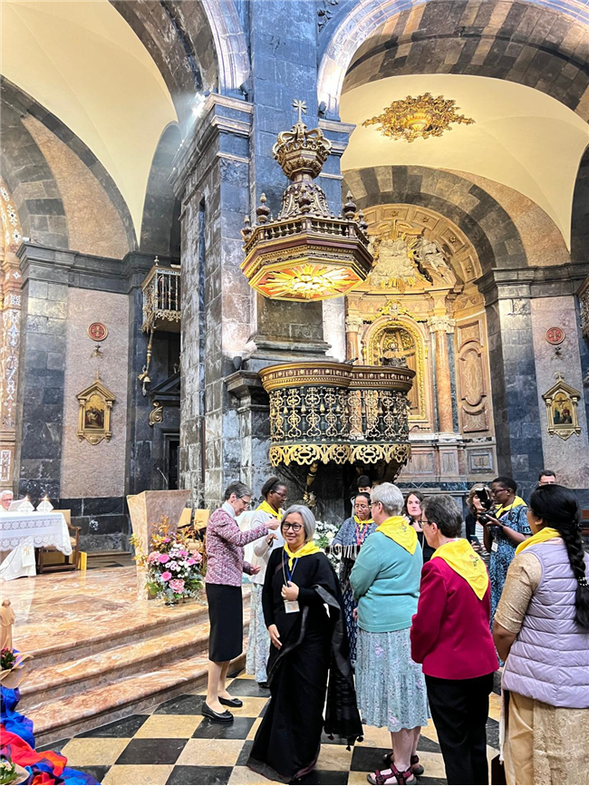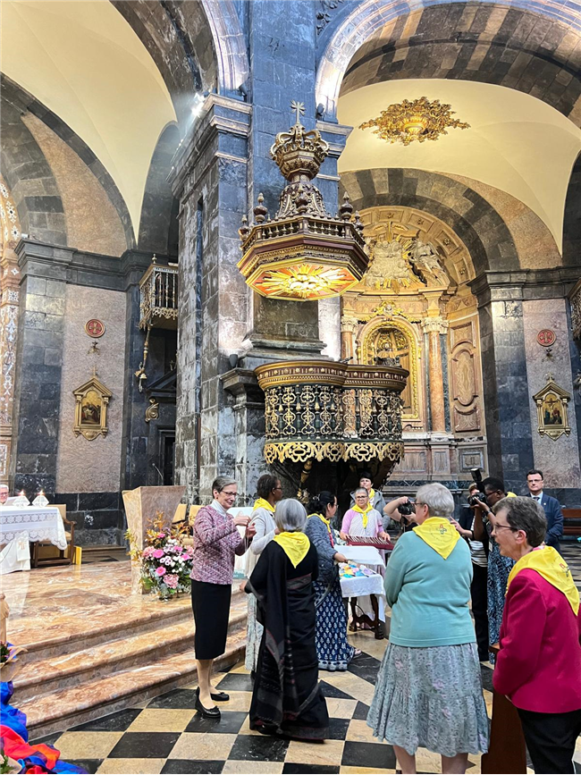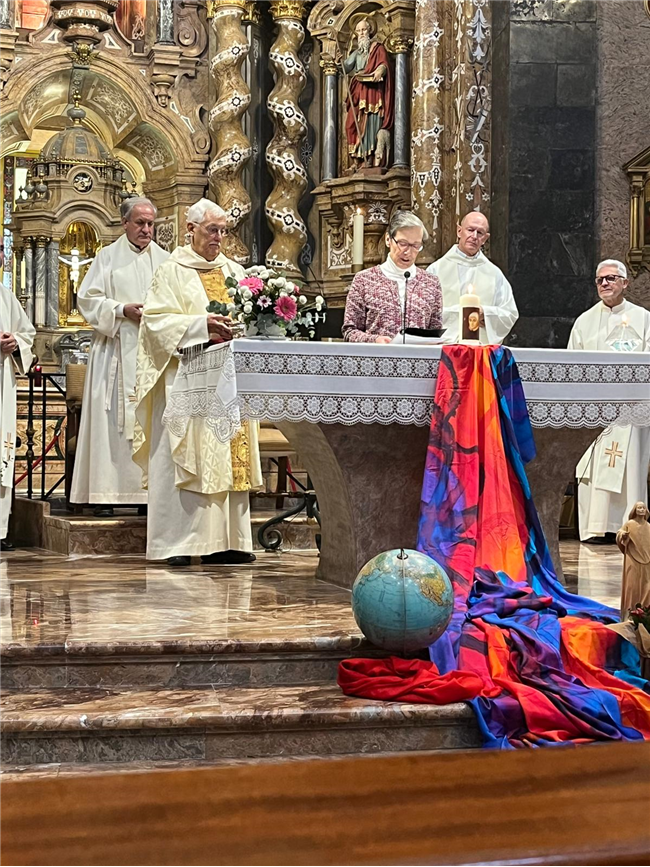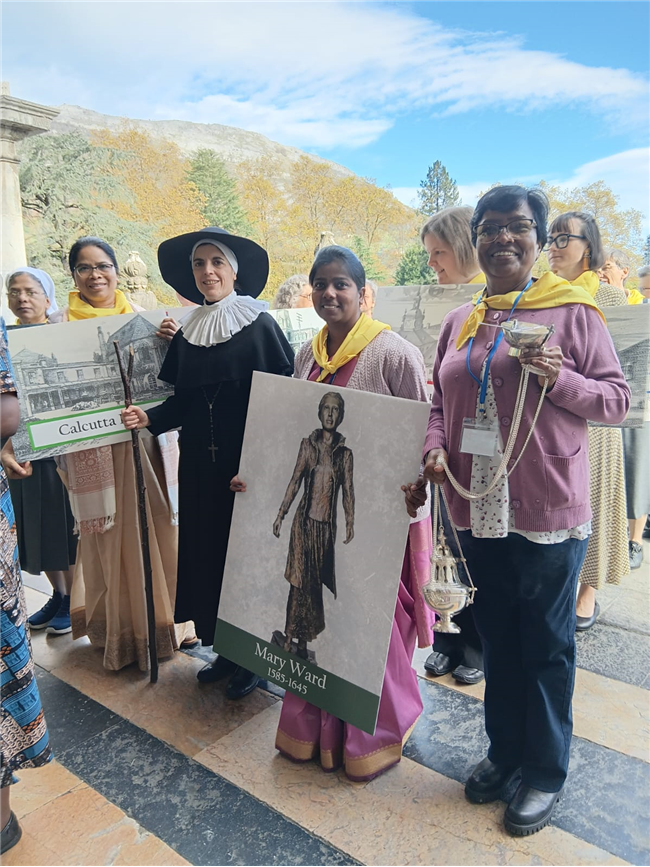 A momentous and grace-filled event took place in Spain on 4th November, 2025, marking the official merger of the two branches of the Mary Ward family — the Congregation of Jesus (CJ) and the Institute of the Blessed Virgin Mary (IBVM). This historic union, long prayed for and lovingly prepared, was celebrated through a solemn Eucharistic Celebration that brought together sisters from across the world, representing both congregations and all provinces. The celebration was held at the Basilica of Loyola, a place deeply significant in the Ignatian tradition which both congregations share. The majestic setting of the basilica, with its golden altars and sacred atmosphere, reflected the joy, reverence, and unity of this historic occasion. The Eucharist was presided over by priests of the Jesuit order, whose spiritual heritage has guided both branches since their beginnings. The liturgy was marked by symbols of unity and thanksgiving. Representatives from different countries carried banners and portraits of Mary Ward, the foundress, along with signs depicting the global presence of both congregations — now one. Hymns of praise, prayers of gratitude, and readings that reflected Mary Ward’s vision of “one and the same institute” filled the air with emotion and hope. The sight of CJ and IBVM sisters standing side by side at the altar beautifully embodied the fulfillment of Mary Ward’s dream, once considered impossible, now realized in faith and love.