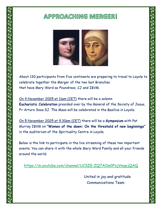 A Historic Union: The Merger of the IBVM (Loreto Sisters) and the Congregation of Jesus (CJ)