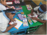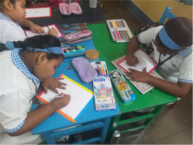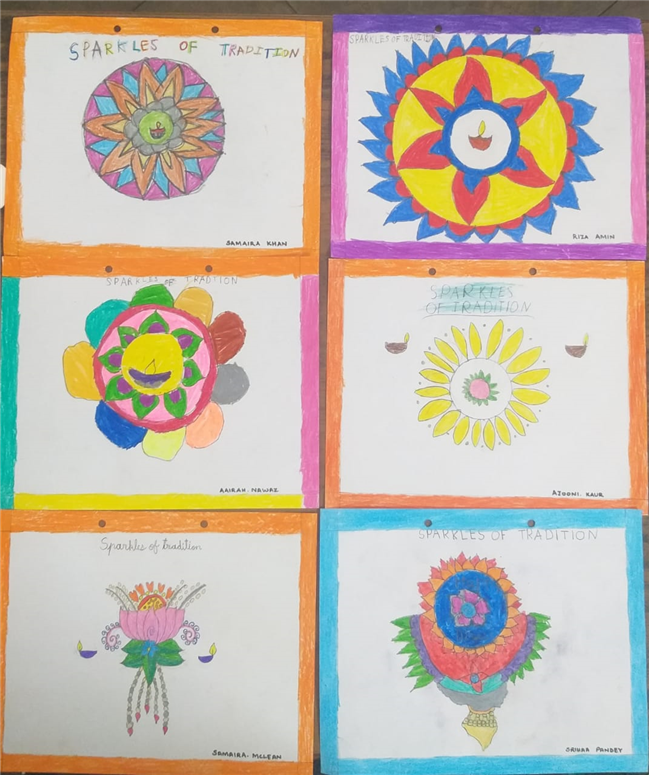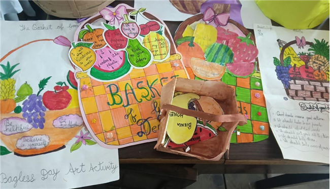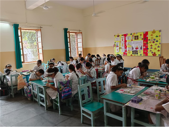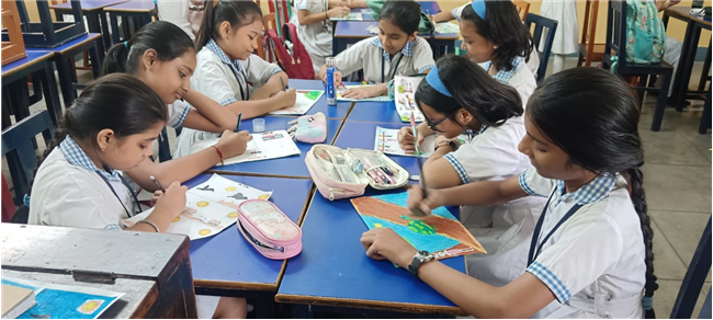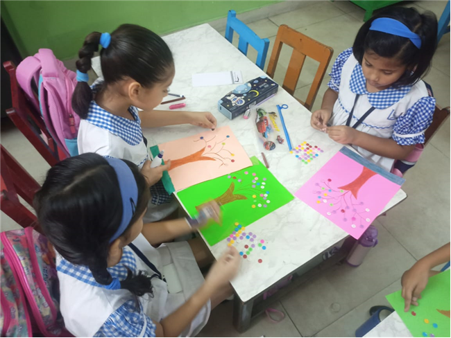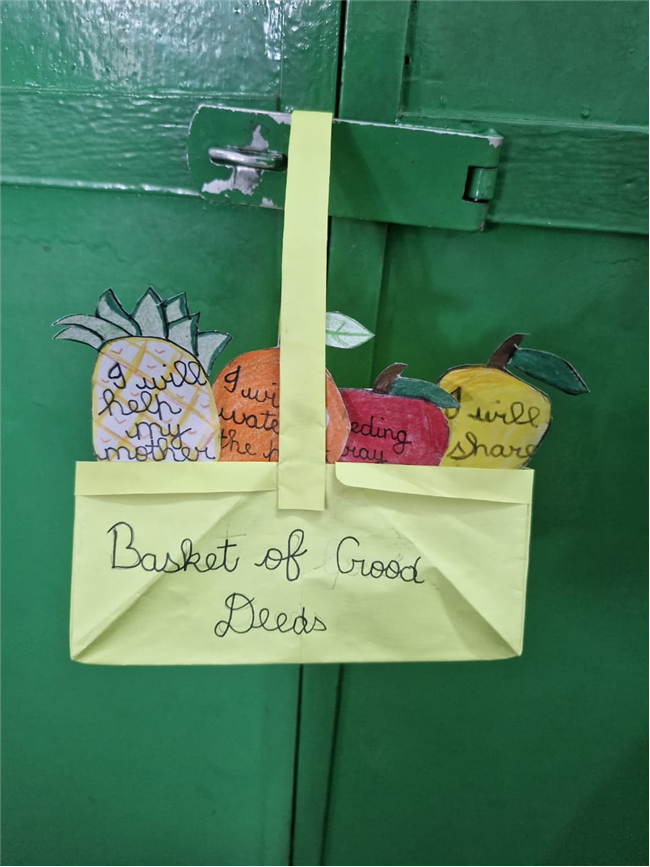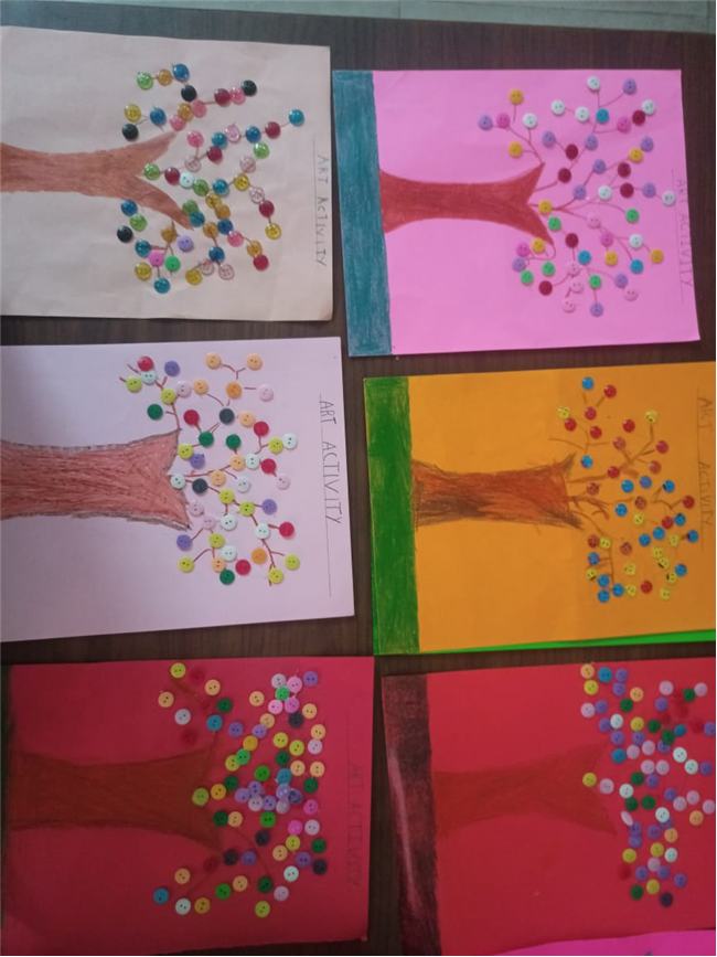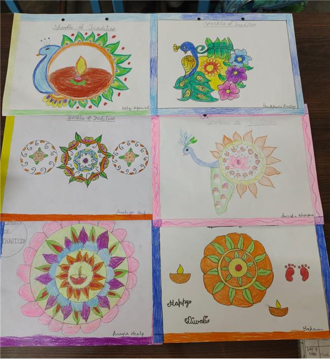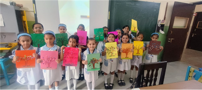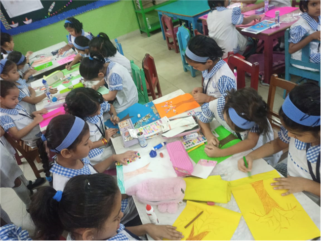 The students of Prep to Class 5 participated enthusiastically in the Art Activity held on 25th October 2025. The day was filled with colours, imagination, and joy as children explored various creative themes such as button art, leaf painting, rangoli designing, finger printing, moral story illustration, and crafting baskets of good deeds. Through these activities, students expressed their ideas beautifully, blending artistry with moral values. The event provided a wonderful platform for young learners to showcase their creativity and originality while celebrating the spirit of learning through art.