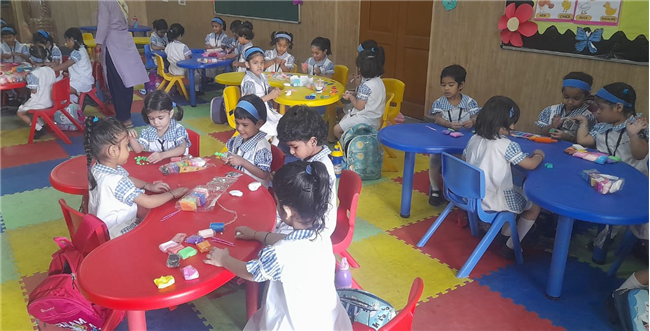 The little ones of Pre-Nursery participated in a Clay Modeling Activity on 9th October with great enthusiasm and creativity. The activity aimed to develop the children’s fine motor skills, imagination, and hand-eye coordination. Each child was given colourful clay to mold and shape into objects of their choice. It was a delight to see their tiny hands at work as they rolled, pressed, and shaped the clay into simple forms like balls, snakes, fruits, and animals. The children thoroughly enjoyed this hands-on experience. The activity not only helped them explore their creativity but also gave them a sense of joy and achievement as they proudly displayed their creations.