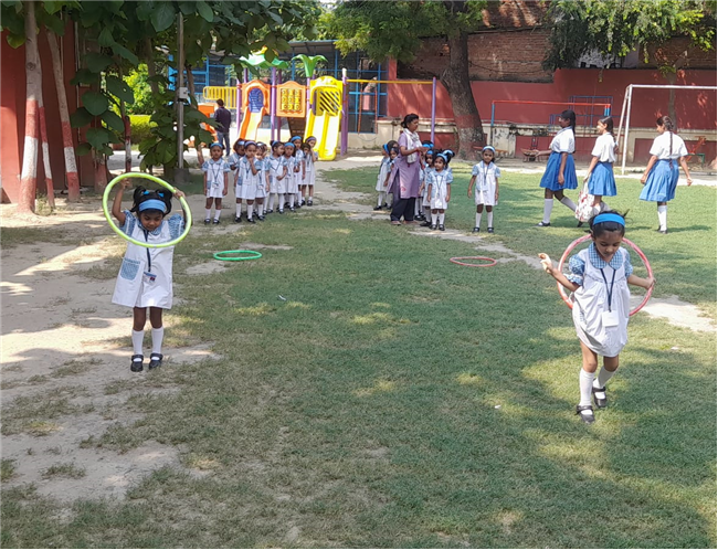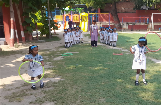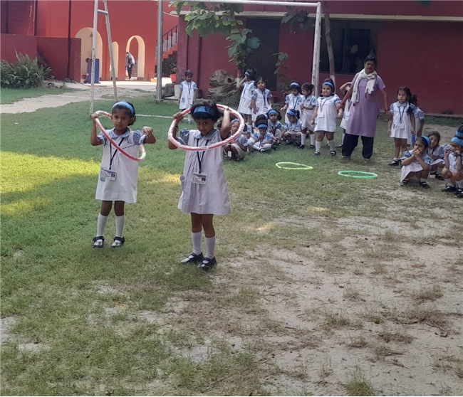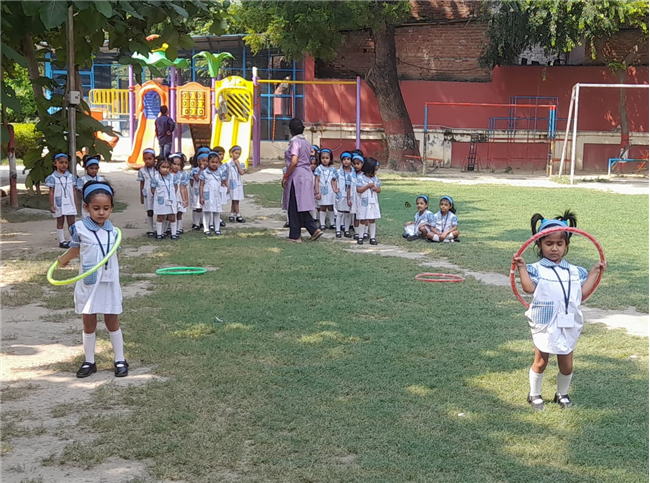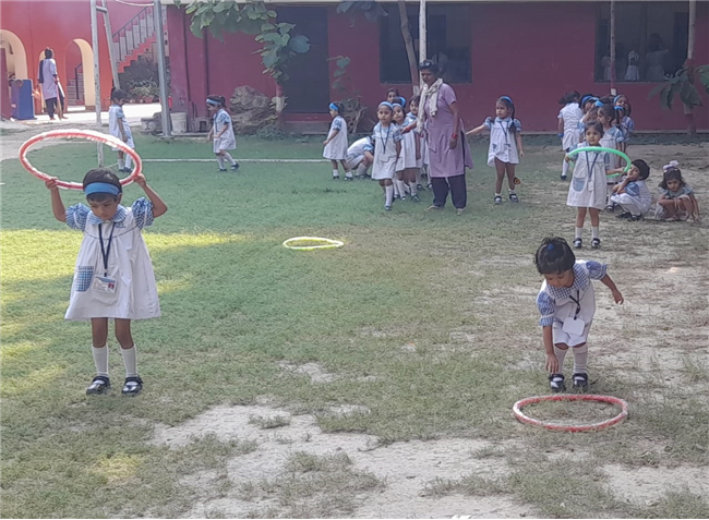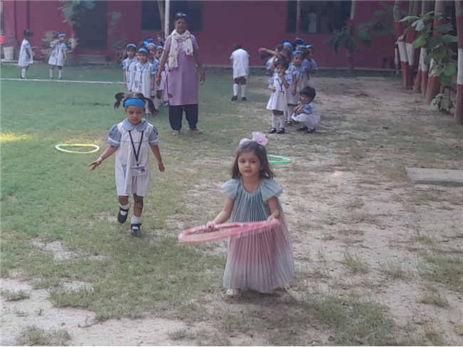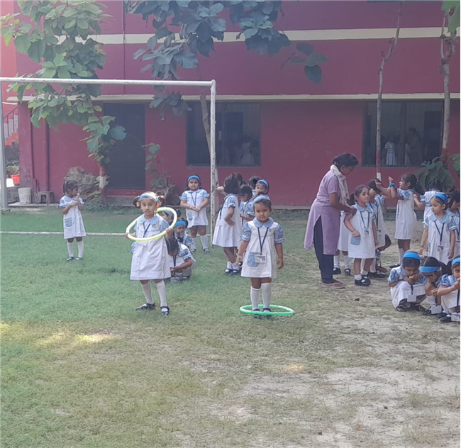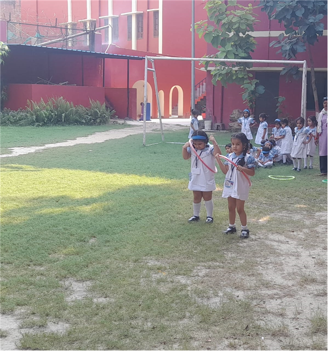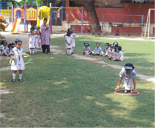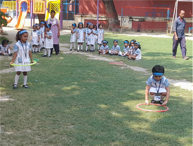 The children of Pre-Nursery participated enthusiastically in the Loop Race activity conducted on 13th October. The activity was designed to develop their gross motor skills, coordination, and balance while encouraging team spirit and confidence. Each child took turns to pass through the colourful loops with excitement and joy. Their cheerful faces and energetic participation filled the playground with laughter and enthusiasm. The Loop Race proved to be a fun-filled learning experience that helped enhance the children’s physical development and sense of sportsmanship.